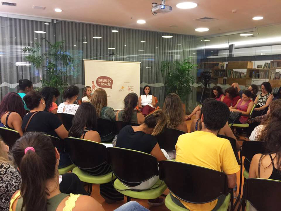 Fotografia de uma reunião, cadeiras posicionadas em círculo. As pessoas conversam.