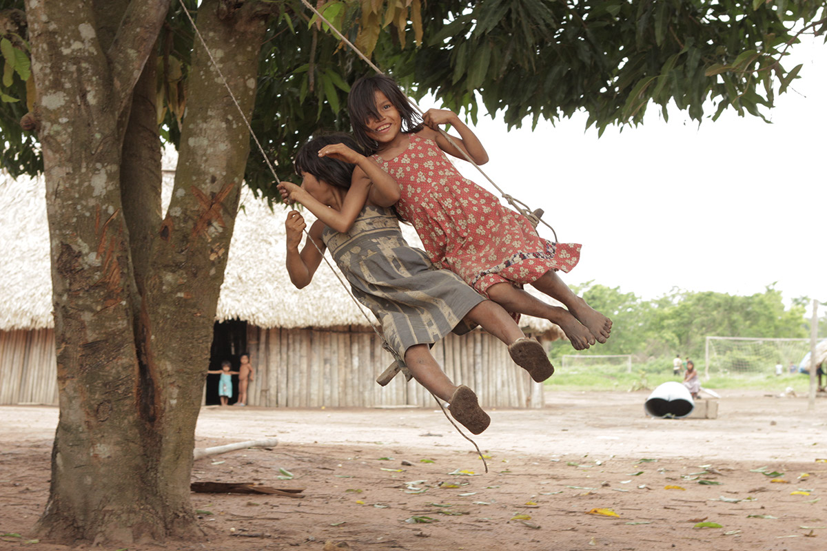 Os Panará também fazem o balanço de embira, fibra extraída da casca de árvores da região. A brincadeira é simples: uma pessoa senta na balança e a outra gira, gira, gira, até que toda a corda de embira esteja retorcida. Depois é só soltar e… Vertigem pura! Uma experiência corporal que fascina.