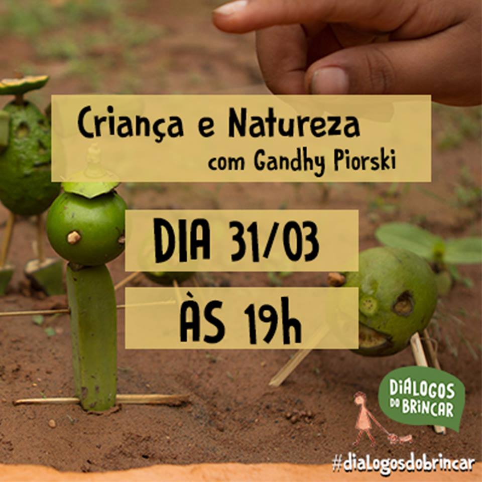 A segunda videoconferência da série “Diálogos do Brincar” irá debater a importância do contato da criança com a natureza e terá como palestrante convidado Gandhy Piorsky, pesquisador de práticas infantis e conselheiro do Projeto Território do Brincar. O debate será exibido ao vivo e gratuitamente no site do Território do Brincar, dia 31 de março, das 19h às 19h50.