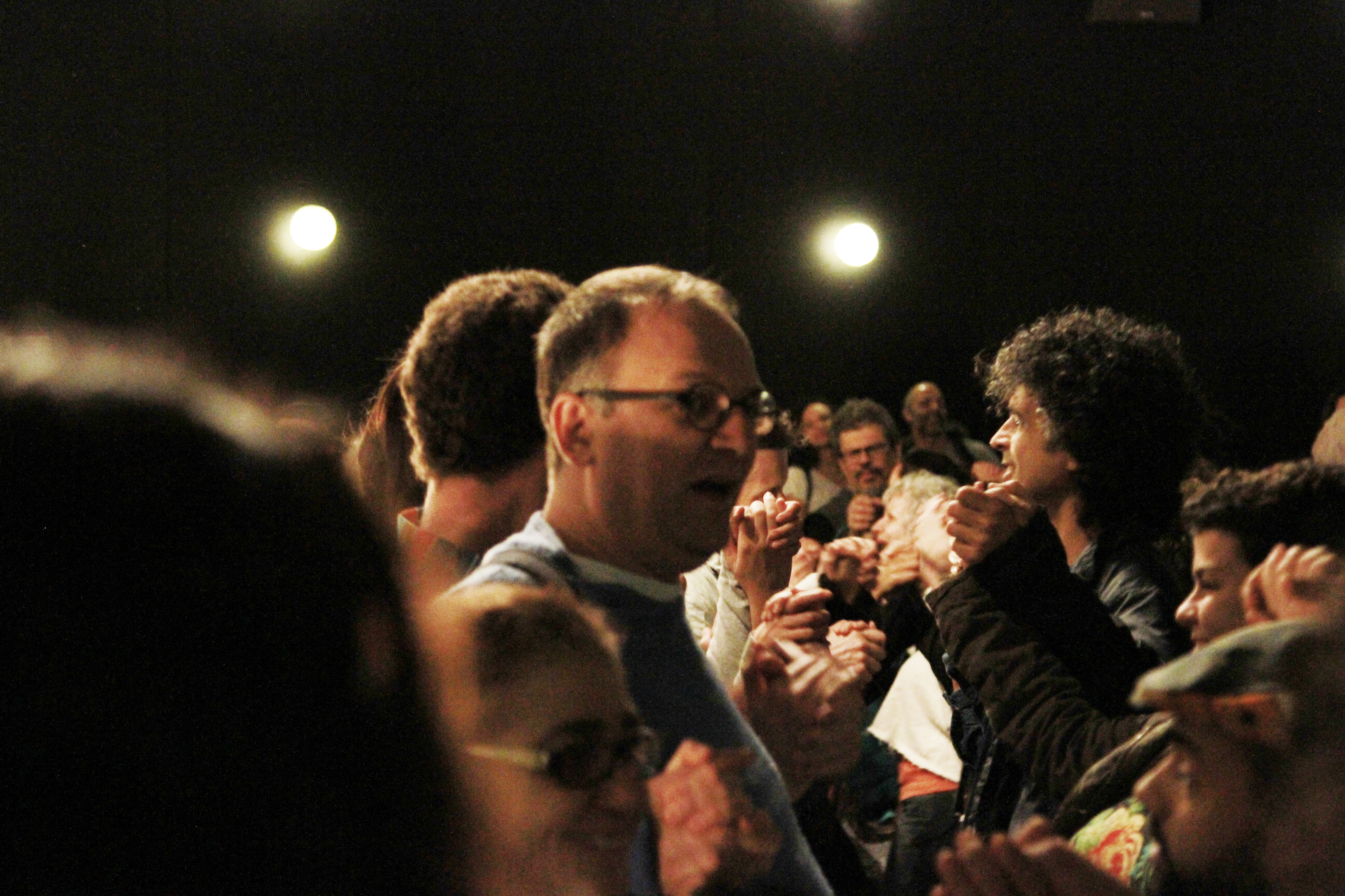 Foto de inúmeras pessoas de mãos dadas em um evento.