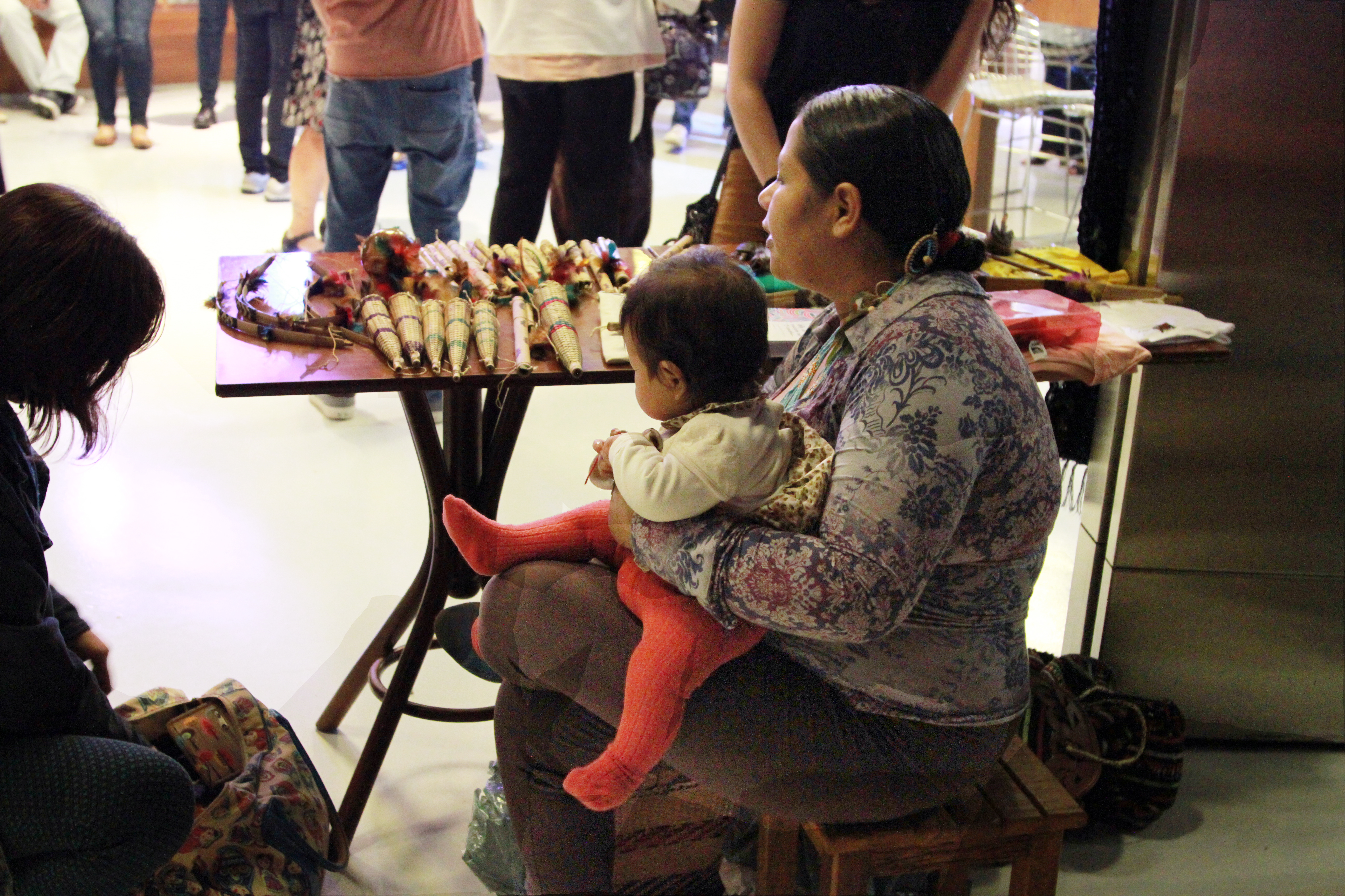 Foto onde á uma mulher sentada com uma criança ao seu colo.