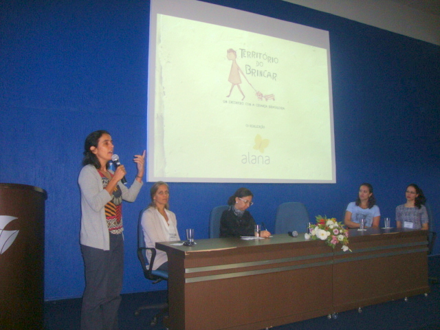 Renata explicou aos presentes que o Território do Brincar, com sua pesquisa, busca despertar, sobretudo, um olhar que penetre nas profundezas do brincar, compreendendo-o como uma manifestação que fala não apenas do universo da infância, mas do humano. As brincadeiras e os gestos infantis são vistos como constituintes da saga humana e essa visão possibilita uma importante ressignificação das brincadeiras; que deixam de ser somente uma possibilidade de repertório, mas abarcam questões fundantes e filosóficas, capazes de enriquecer o trabalho do educador.