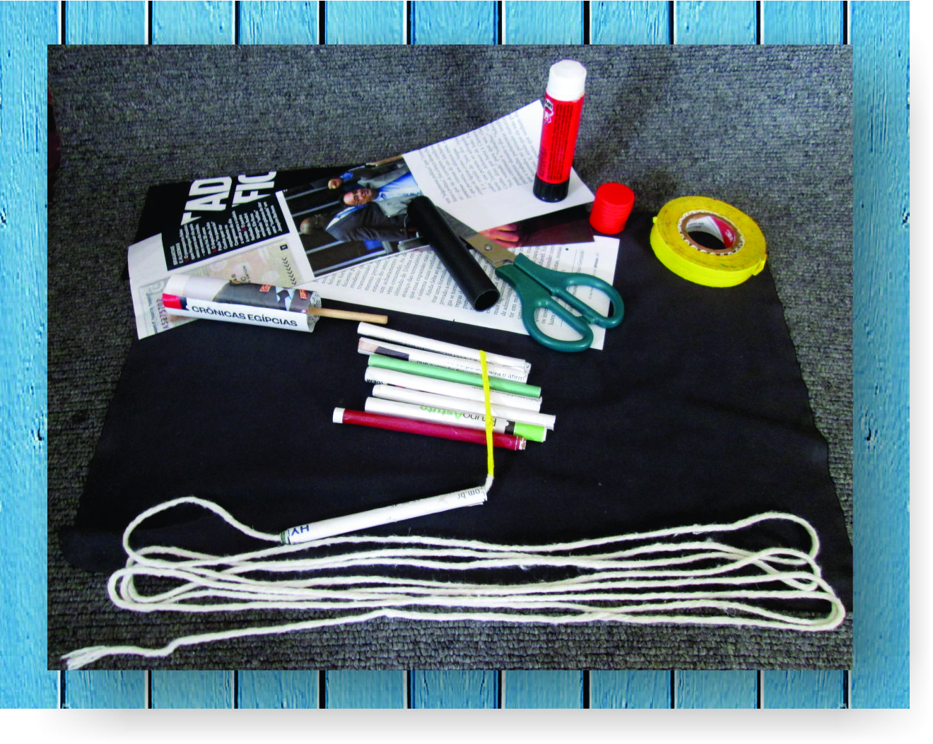 – folhas de revista ou jornal (cortados com =/-8 cm de largura)