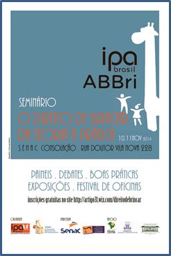 Para refletir e conscientizar sobre essa importância e a criação de espaços lúdicos, a equipe do Tempo de Creche participou do Seminário O Direito de Brincar: da teoria à prática, realizado no SENAC Consolação e Biblioteca Infantil Monteiro Lobato nos dias 10 e 11 de novembro. Foi organizado pela IPA Brasil (filiada a IPA internacional – International Play Association) [www.ipadireitodebrincar.org.br] e ABBri – Associação Brasileira de Briquedotecas [www.brinquedoteca.org.br] Programados 5 painéis com temas relevantes e com repercussão em relação a percepção da necessidade do brincar, não só da criança pequena, mas em todas as faixas etárias. Estes temas proporcionam conteúdos de reflexão e aprendizagem constante para todo profissional que trabalha na educação Infantil.