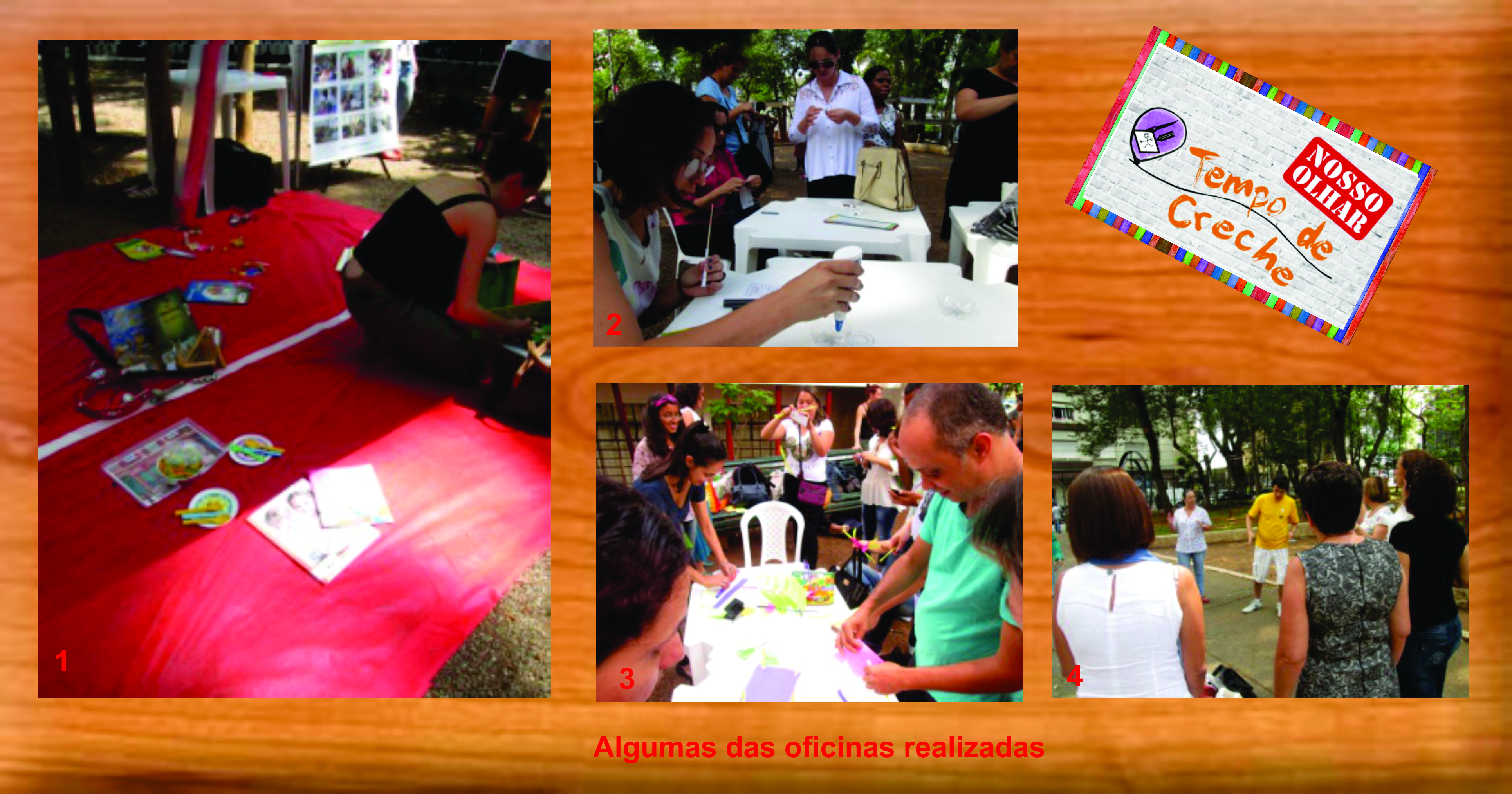 Imagens 1: Ler é brincar? Brasil Leitor; 2: Brinquedo se faz? Espaço Brincar; 3:arte-arquitetura para crianças, Jorge Raedó*; 4 Contar historias é brincar, Fábio Lisboa/Viva e deixe viver)